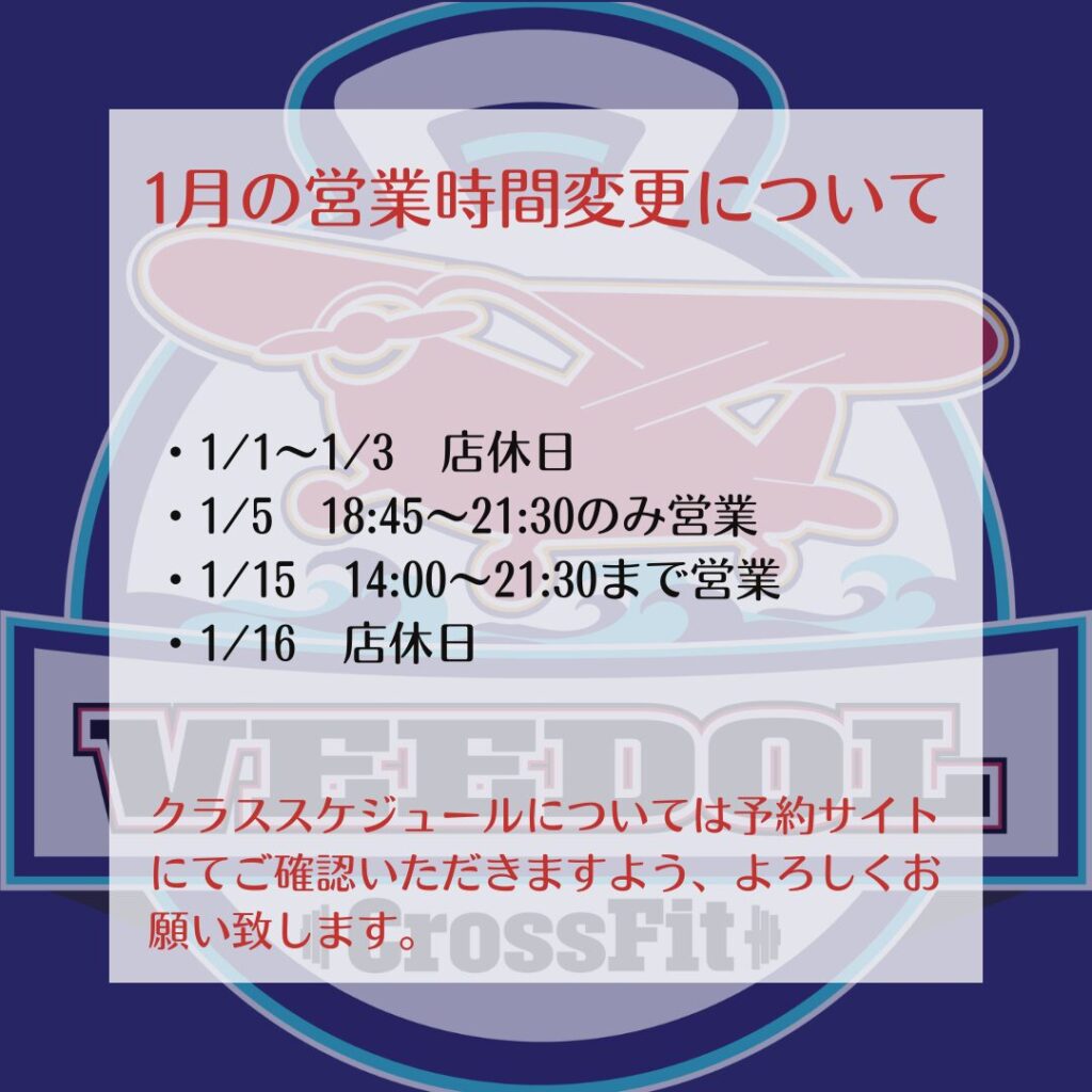 2025.12.26 NEWS 1月の営業時間変更日のお知らせ 1月の営業時間変更日のお知らせを致します。 営業時間変更日は添付の画像に記載の通りとなっております。 1月はクラススケジュールも変更になっております。 ご予約の際はお時間をご確認の上ご予約いただけますようよろしくお願い致します。 < PREV NEWS ALL NEXT >